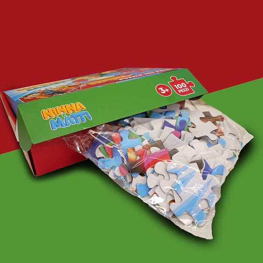 NINNA e MATTI Puzzle da 100 Pezzi Semplice per Bambini, Tema Foto Azzurro, 52x38 cm